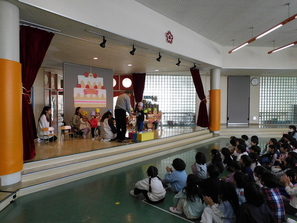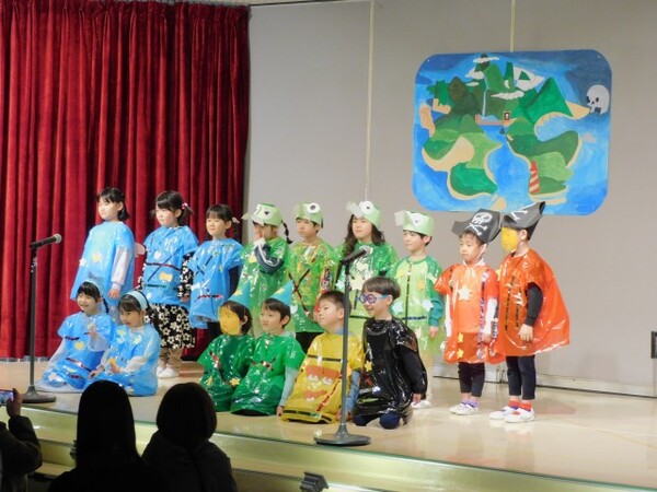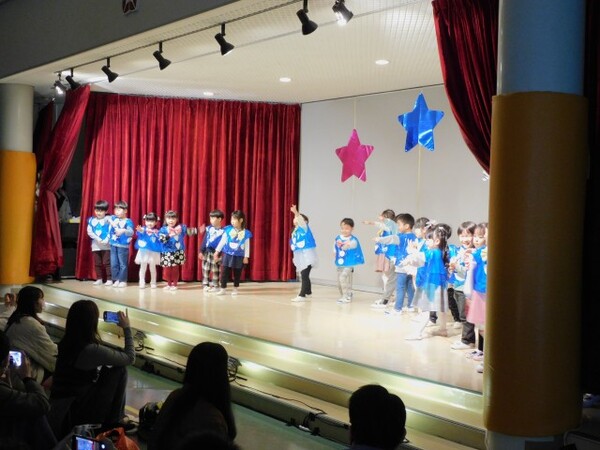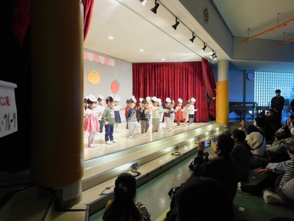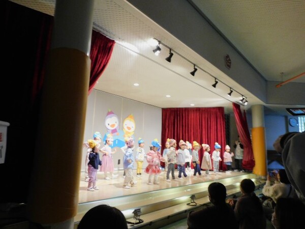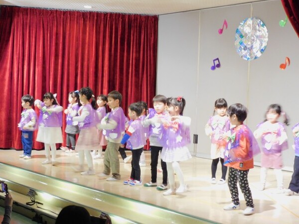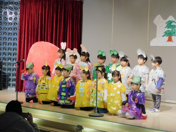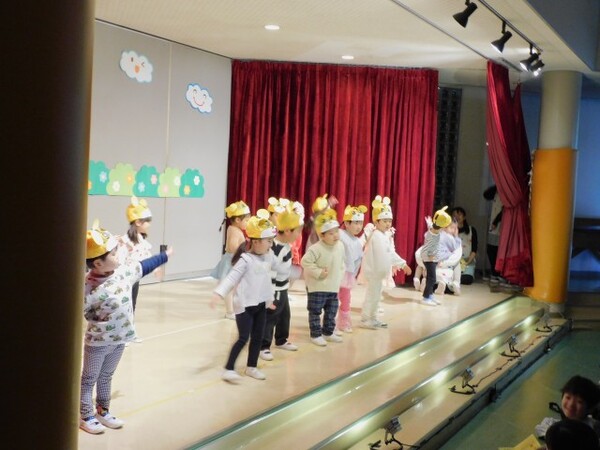 11月29日(土) 第45回 保育発表会を行いました。4つのブロックに分け4部構成で実施しました。インフルエンザが心配でしたが、前の週に学級閉鎖になったクラスの子どもたちも全員登園できて無事に終えることができました。子どもたちが自分たちで考えた衣装、振り付け、劇のセリフ…様々な場面で子どもたちの考えを取り入れて発表しました。子どもたちの素敵な姿がホールいっぱいに輝いていた1日となりました。