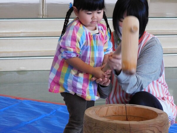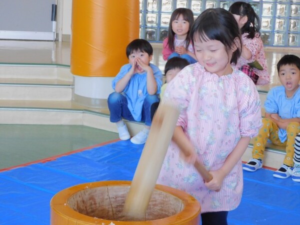 12月4日(木)ふくずみ幼稚園恒例のおもちつきを行いました。朝から園内にはお餅をふかしたいい匂いが漂っていました。