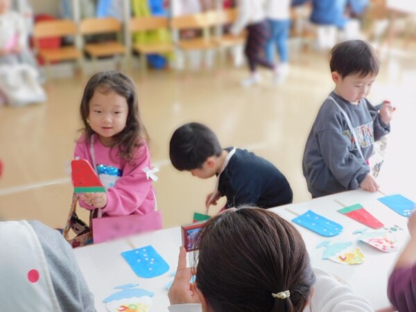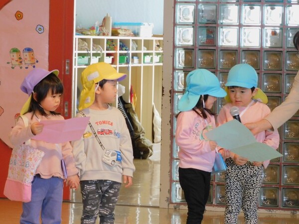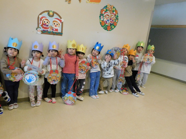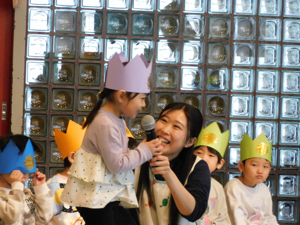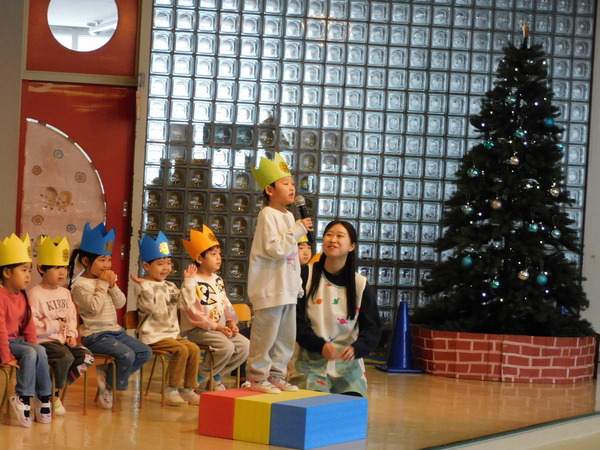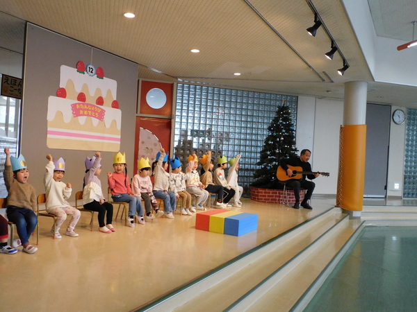 今日は、12月生まれさんのお誕生会。全員元気に参加できました。大きくなったら、プリキュアやおみせやさんになりたい子や、「ぱぱになりたい」「ままになりたい子もいました。