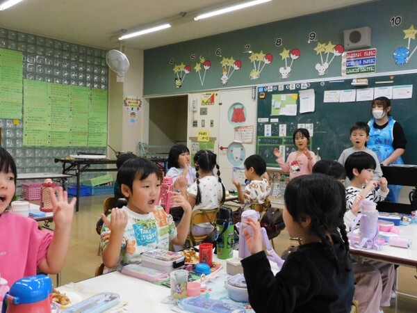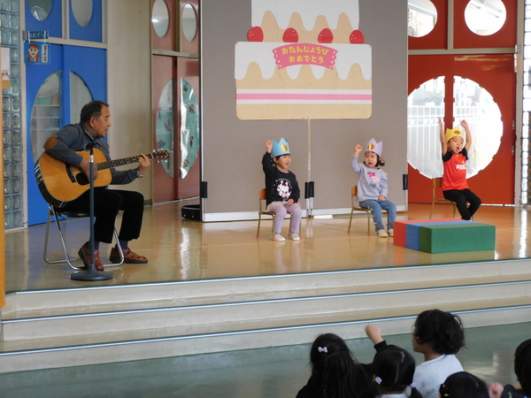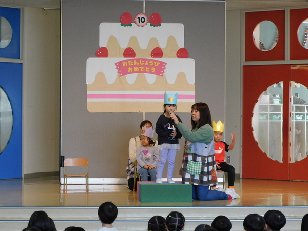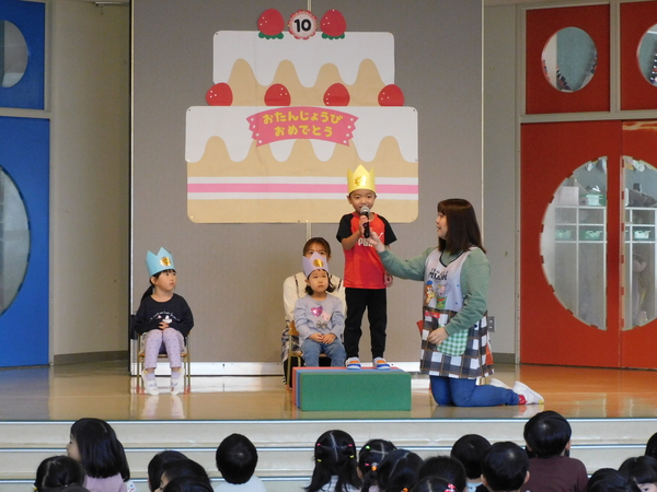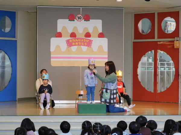 今日のお誕生会は、3人でした。3人でも元気に参加し、しっかり自己紹介できました。