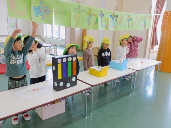 12月10日(水)幼小交流の一環で、福住小学校を訪問しました。体育館で5年生が考えてくれた色々な遊びコーナーで楽しみました。とても優しい5年生の関わりのおかげでとっても素敵な時間をすごすことができました。