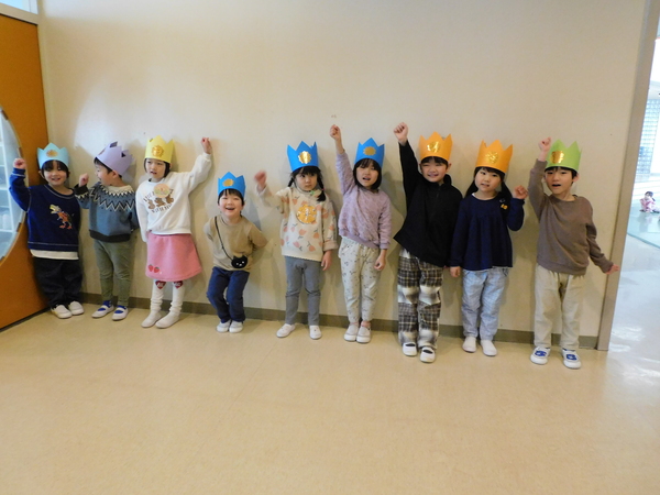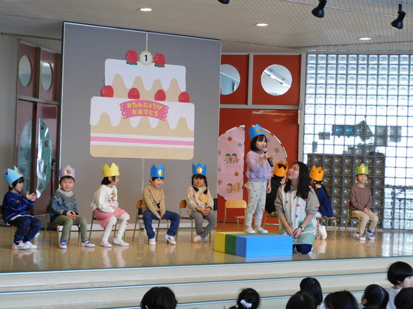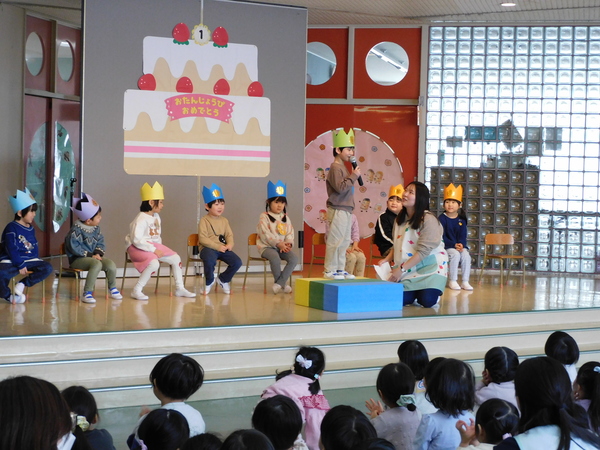 今日は1月生まれのさんのお誕生会。お外は雪が降り寒い日でしたが、お誕生会は1月生まれさんへのお祝いの歌であつく盛り上がっていました。