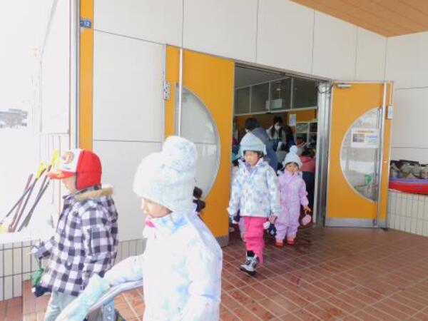 ひもの赤い印の下に優しく種を置き、その上に土のお布団をかけました。「おおきくなあれ!おおきくなあれ!」とみんなのパワーを種に降り注ぎ作業は終了です。お礼を言ってお部屋に戻りました。収穫が楽しみです。